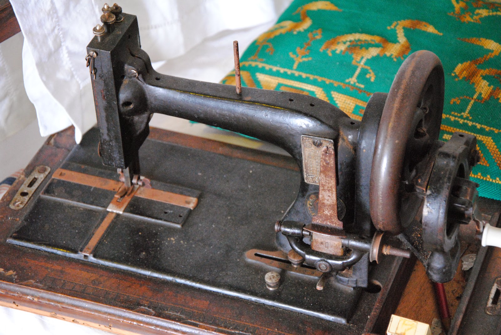 καθισμένη μπροστά στην ραπτομηχανή της ,