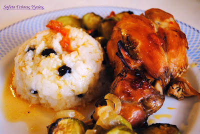 Μέσα στον ζωμό του βράζουμε το ρύζι και του προσθέτουμε λίγες σταφίδες,