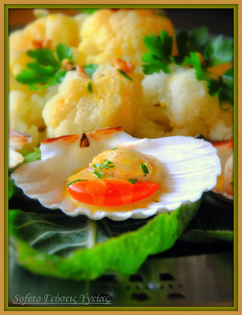 Σερβίρουμε το κουνουπίδι μας μαζί με τα χτένια ,